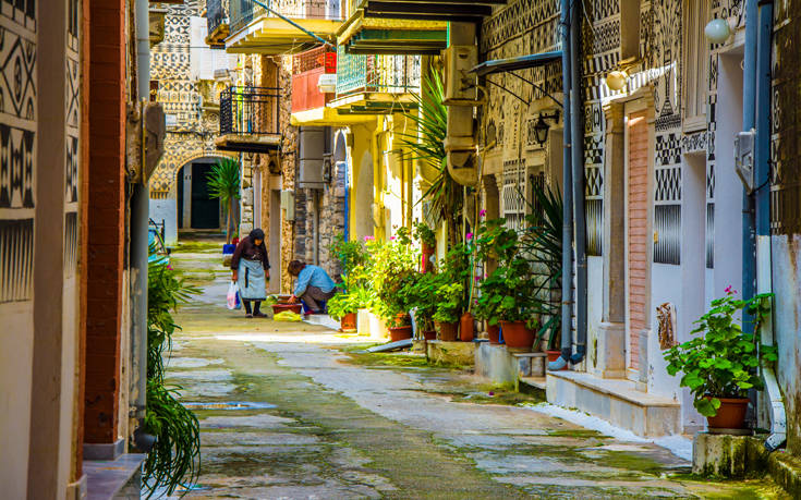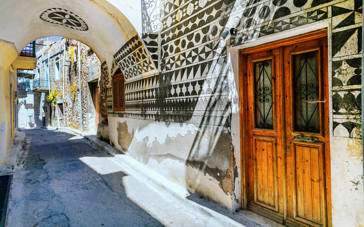 Ανακηρυγμένο ως διατηρητέο μνημείο, είναι γνωστό τοις πάσι για τη γεωμετρική διακόσμηση των εξωτερικών τοίχων των σπιτιών του, ένα χαρακτηριστικό στοιχείο που το καθιστά μοναδικό στο είδος του σε όλη την Ελλάδα.