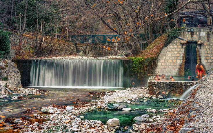 Ιδανικό φόντο στις χαλαρωτικές βουτιές το τοπίο με το άγριο δάσος στη σκιά του βουνού, που συμπληρώνει τις ψηφίδες της ξεκούρασης και της απόλαυσης.