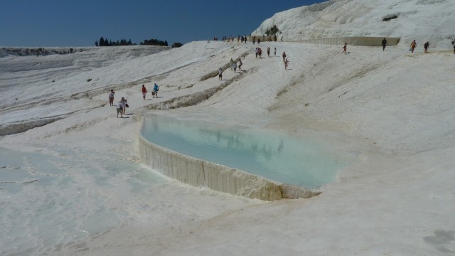 Πρόκειται για ένα μαγευτικό φυσικό τοπίο, με αβαθείς μικρές δεξαμενές και μικρούς καταρράκτες, που δημιουργήθηκε μέσα από μια φυσική διαδικασία αιώνων. Το πάλλευκο σκηνικό με τις ανισόπεδες μικρές πισίνες ονομάστηκε Pamukkale, που σημαίνει Φρούριο από βαμβάκι, λόγω της εντυπωσιακής του μορφολογίας και από το 1988 είναι στη λίστα με τη Μνημεία Παγκόσμιας Πολιτιστικής Κληρονομιάς της UNESCO.