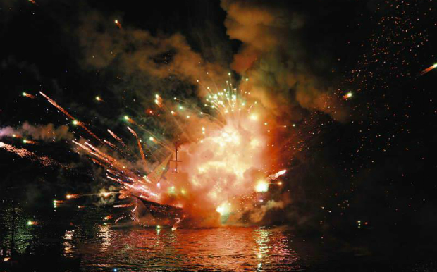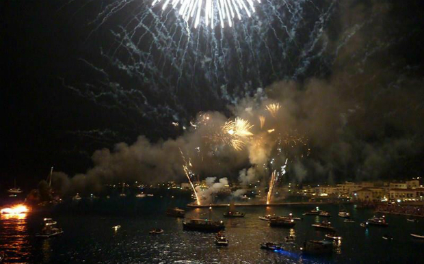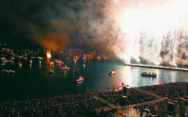 Οι καπνοί και οι εκρήξεις γίνονται ένα με τις χαρμόσυνες σειρήνες των πλοίων που δίνουν το σύνθημα για την κορύφωση της γιορτής. Ο ενθουσιασμός του κόσμου και τα χειροκροτήματα δίνουν στην ατμόσφαιρα μια μοναδική διάσταση και δεκάδες βεγγαλικά κάνουν τη νύχτα μέρα σε ένα μοναδικό θέαμα.