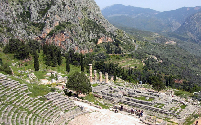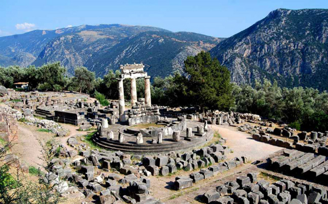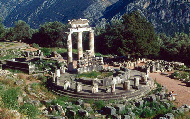 Το ιερό των Δελφών βρίσκεται στους πρόποδες του Παρνασσού, ανάμεσα σε δυο τεράστιους βράχους, τις Φαιδριάδες, και αποτέλεσε το πιο ξακουστό μαντείο της αρχαίας Ελλάδας. Υπήρξε ο ομφαλός της γης, όπου σύμφωνα με τη μυθολογία εδώ έγινε η συνάντηση των δύο αετών, που έστειλε ο Δίας από την άκρη του σύμπαντος για να υποδείξουν το κέντρο του κόσμου.
