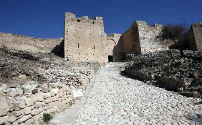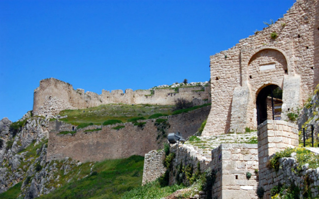 Για να φτάσετε στην κορυφή του λόφου θα ακολουθήσετε ένα ανηφορικό λιθόστρωτο δρομάκι και θα περάσετε από τρεις διαδοχικές πύλες, οι οποίες είναι χτισμένες στα πρότυπα της φράγκικης αρχιτεκτονικής. Τα εντυπωσιακά τείχη, τυπικό δείγμα φρουρίου, ανήκουν στα Μεσαιωνικά Χρόνια, αλλά υπάρχουν και κάποιες τούρκικες προσθήκες. Η μεσαιωνική οχύρωση χτίστηκε πάνω στην αρχαία ή αποτελεί ανακαίνισή της.