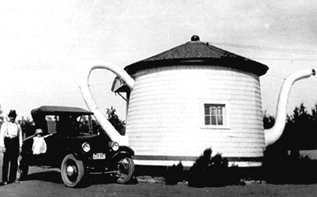 Το κτήριο διαθέτει ένα κυκλικό πλαίσιο με κωνική στέγη, σιδερένια «λαβή» και «στόμιο». Πολλές ακόμα καινοτόμες κατασκευές δημιουργήθηκαν κατά τη διάρκεια της επέκτασης του εθνικού οδικού δικτύου των Ηνωμένων Πολιτειών από το 1920 έως το 1930 και αποτέλεσαν αξιοθέατα της περιοχής.