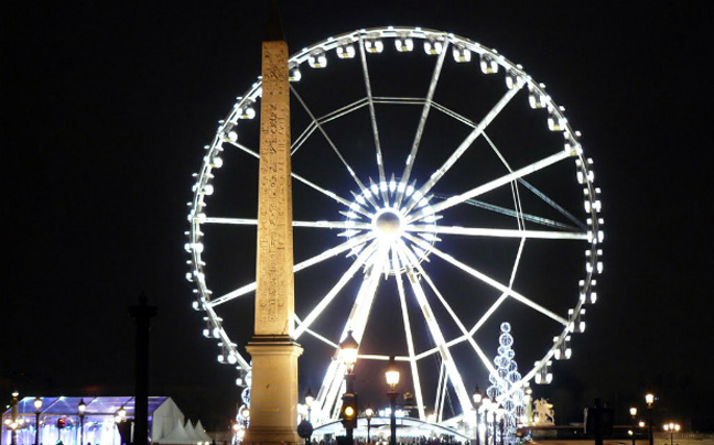 Συνεχίστε με την περίφημη πλατεία de la Concorde. Στη μέση θα δείτε ένα φανταστικό γιγαντιαίο χριστουγεννιάτικο δέντρο …αλλά δεν είναι αυτό που θα σας καταπλήξει. Υπάρχει επίσης μια γιγαντιαία ρόδα που θα σας κόψει την ανάσα.