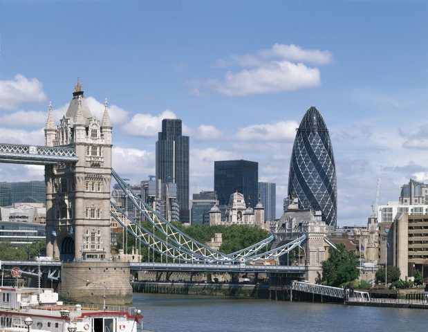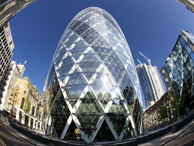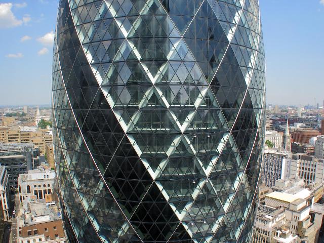 Το εντυπωσιακό κτήριο 30 St Mary Axe, ευρέως γνωστό ως Gherkin, που σημαίνει τουρσί, λόγω του σχήματος του, είναι ένας ουρανοξύστης που κατασκευάστηκε στην κύρια οικονομική περιοχή του Λονδίνου, το City.