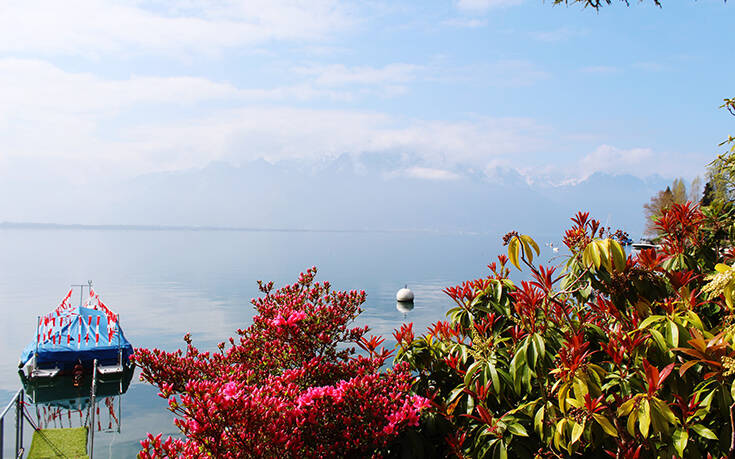 Η γαλήνια λίμνη της Γενεύης με την ανθισμένη φύση ολόγυρά της κατά την πασχαλινή περίοδο ηρεμεί το πνεύμα και ταξιδεύει το νου