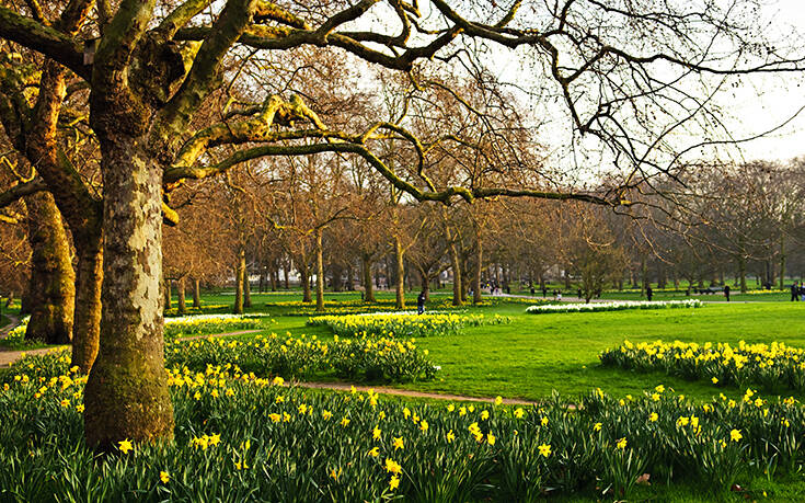 Χρωματιστή νότα από τους νάρκισσους στο καταπράσινο St. Green Park στο Λονδίνο κατά την περίοδο του Πάσχα