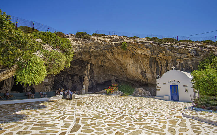 Ανεβαίνοντας προς το σπήλαιο, η θέα είναι ξεχωριστή. Το απέραντο γαλάζιο του Αιγαίου απλώνεται στα πόδια του επισκέπτη, ενώ μπορείτε να χαζέψετε το Σωρό και τους γύρω ορμίσκους κι απέναντι την Πάρο.