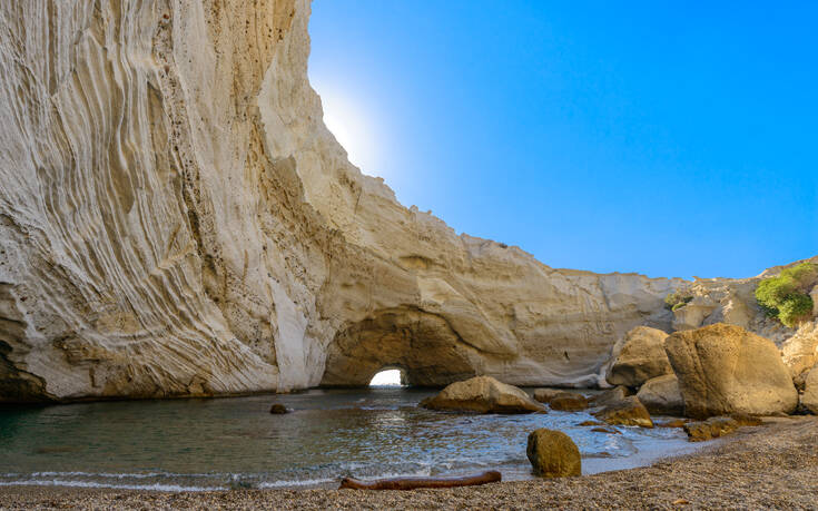Η μικρή παραλία και η σπηλιά της Συκιάς, στη δυτική πλευρά της Μήλου, που αφήνουν τον επισκέπτη έκθαμβο από το μεγαλείο της φύσης που αντικρίζει μπροστά του.