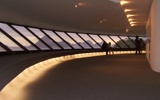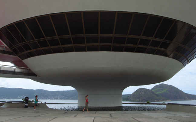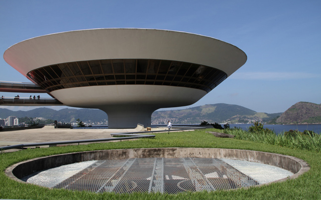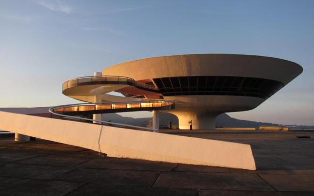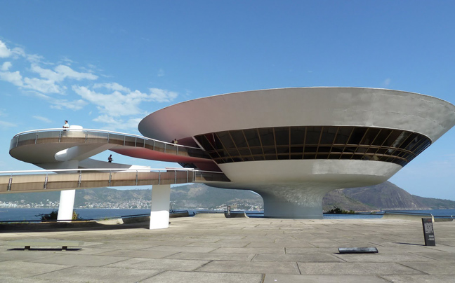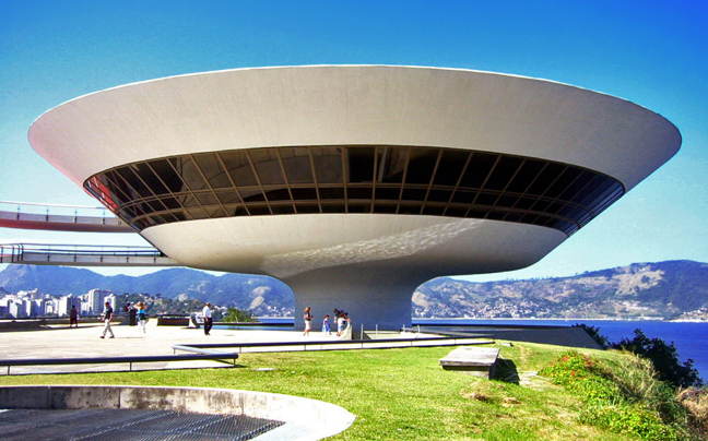 Ένας τεράστιος ιπτάμενος δίσκος μοιάζει να έχει προσγειωθεί στην άκρη ενός απόκρημνου λόφου. Το Μουσείο Σύγχρονης Τέχνης ( MAC) βρίσκεται στην πόλη της Niterói του Ρίο ντε Τζανέιρο στη Βραζιλία και είναι ένα από τα κύρια αξιοθέατα της περιοχής.