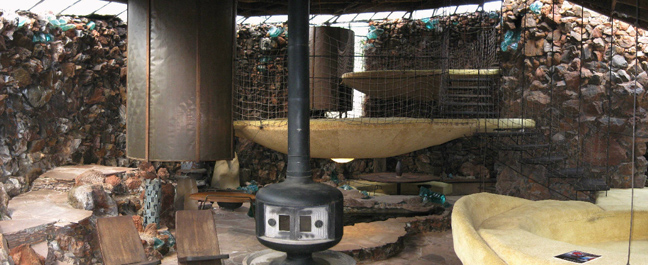 Το σπίτι χτίστηκε κατά τη διάρκεια πέντε ετών από την Nancy και τον Eugene Bavinger, τους ιδιοκτήτες του, οι οποίοι ήταν καλλιτέχνες και δέχθηκαν τη βοήθεια φοιτητών τέχνης, εθελοντών και τοπικών επιχειρήσεων.