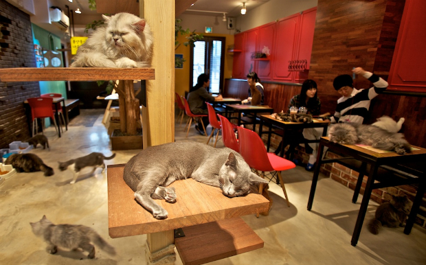 Η εμμονή της Ιαπωνίας με κάθε τι που έχει να κάνει με τα αιλουροειδή είναι διαπιστωμένη. Το Τόκιο αριθμεί πάνω από εκατό καφετέριες για γάτες, όπου θα πιείτε τον καφέ σας και θα αφήσετε το κατοικίδιο σας να κοινωνικοποιηθεί με τις υπόλοιπες γάτες που χαλαρώνουν πάνω σε καρέκλες, καναπέδες και καλαθάκια. Τα πιο δημοφιλή είναι τα Shimokitazawa’s Cateriam, Nekobukuro στο Ikebukuro, Curl Up Café στο Haramachi, και το Nyafe Melange.