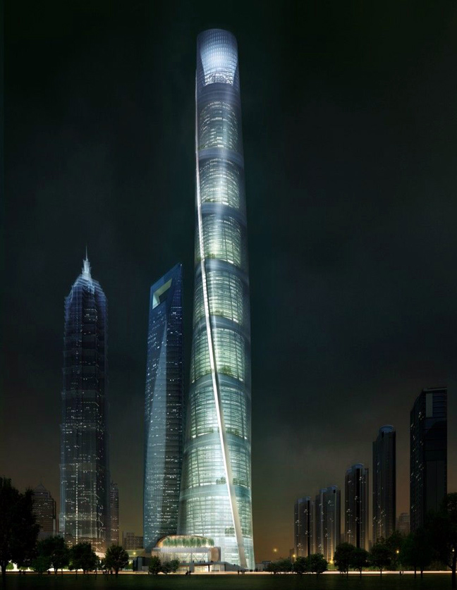 Η 632 μέτρων δομή είναι υπό κατασκευή στον πυρήνα της Lujiazui, της εμπορικής περιοχής της Σαγκάης και έχει προγραμματιστεί να ολοκληρωθεί εντός του τρέχοντος έτους. Μάλιστα, είναι ο ψηλότερος ουρανοξύστης της “ομάδας” των τριών, που δεσπόζουν στην περιοχή. Οι άλλοι δυο είναι ο Jin Mao Tower και το Παγκόσμιο Οικονομικό Κέντρο της πόλης.