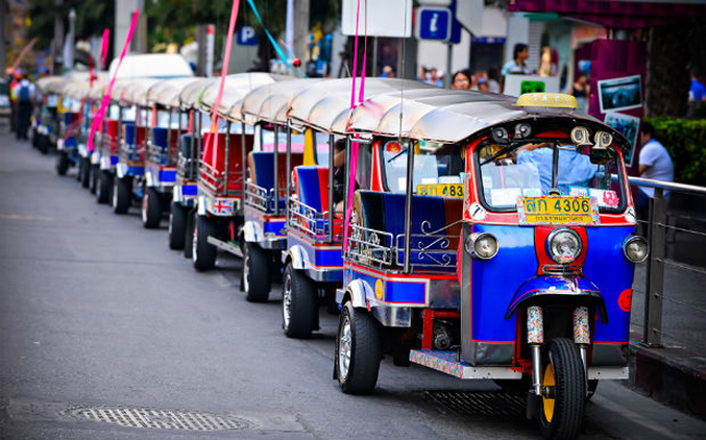 2. Είναι ομολογουμένως αρκετά τουριστικά, αλλά τα tuk tuk αποτελούν έναν από τους διαδεδομένους τρόπους μετακίνησης στους πολυσύχναστους δρόμους της Μπανγκόκ. Οι περισσότεροι ντόπιοι, ωστόσο, που εργάζονται στην πόλη χρησιμοποιούν συχνά το σιδηροδρομικό δίκτυο της πόλης (Skytrain).