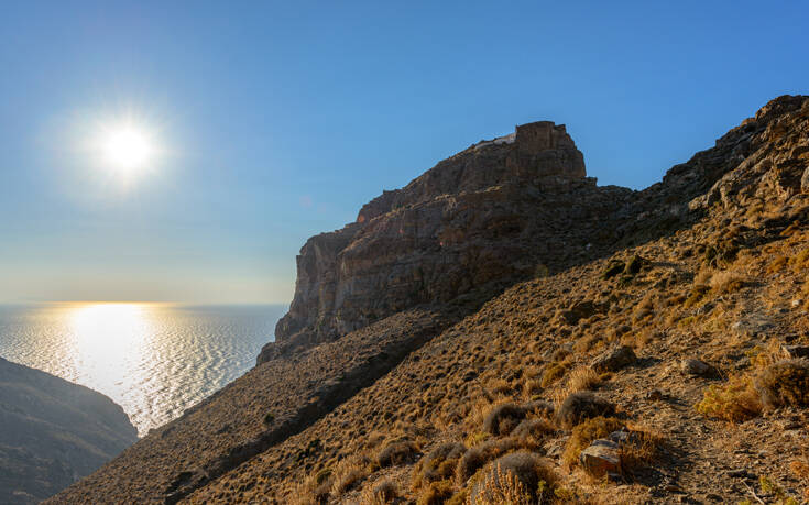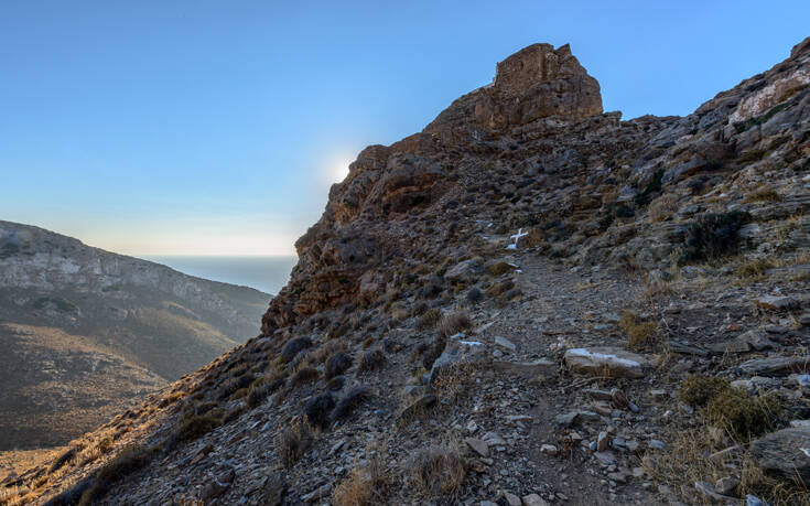 Μια εικόνα με βραχώδεις «πύργους» αποκαλύπτεται μπροστά στον επισκέπτη, με τον πιο ψηλό από αυτούς να «φιλοξενεί» τα ερείπια του κάστρου, ανάμεσα στα οποία και την πάλλευκη πινελιά από το εκκλησάκι της Παναγιάς. Με την θέα στην κορυφογραμμή να φτάνει στα ανοιχτά του πελάγους, το μάτι χάνεται στο απέραντο γαλάζιο και ο νους ταξιδεύει σε μέρη γαλήνια και ονειρικά.