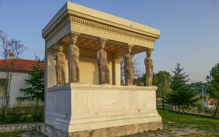 Από τα πιο σημαντικά αξιοθέατα του χωριού -συναντάται στην αρχαία ακρόπολη των Καρυών- όπως μπορείτε να φανταστείτε, ένα μνημείο αφιερωμένο στις Καρυάτιδες, το οποίο δημιουργήθηκε το 1983 και αποτελεί αντίγραφο τμήματος του αρχαίου ναού του Ερέχθειου στην Ακρόπολη.