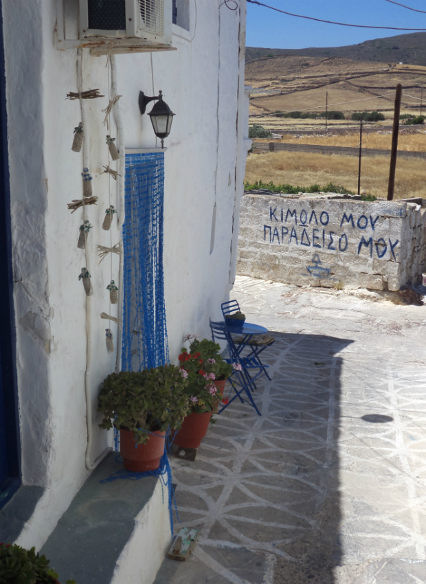 Στο χωριό χτυπά η καρδιά του νησιού, εκεί θα πιείτε τον καφέ σας το πρωί, θα κάνετε βόλτες στα φρεσκοασβεστωμένα καλντερίμια του και θα αφεθείτε στη γαλήνη του κυκλαδίτικου τοπίου με τα πανέμορφα ολόλευκα σπίτια και τις γεμάτες λουλούδια αυλές.