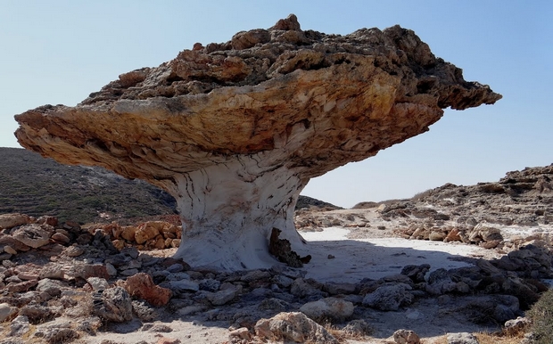 Στο βορειοδυτικό τμήμα της Κιμώλου, στα δυτικά του υψώματος Σκλάβος, υπάρχει ένα τεράστιο πέτρινο μανιτάρι, που οι κάτοικοι το ονομάζουν Σκιάδι. Πρόκειται για ένα μνημείο της φύσης που βρίσκεται στη μέση ενός γυμνού πλατώματος με υπέροχη θέα.