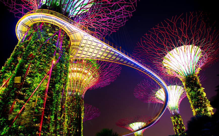 Στην καρδιά του αστικού ιστού της Σιγκαπούρης, συναντά κανείς ένα άκρως φουτουριστικό μέρος που φέρνει στο νου εικόνες από την επιτυχημένη και μοναδική στο είδος της ταινίας «Άβαταρ». Ο λόγος για το φουτουριστικό πάρκο Gardens By The Bay που απλώνεται σε μια έκταση 270 στρεμμάτων και αποτελεί τον μεγαλύτερο πνεύμονα πρασίνου στην πόλη της νοτιοανατολικής Ασίας.