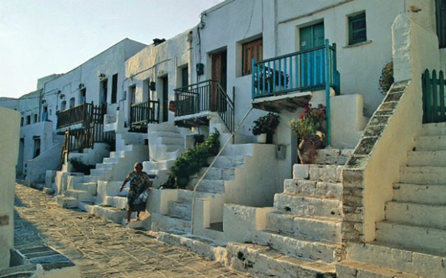 Τα λευκά σπιτάκια, γνήσιας κυκλαδίτικης αρχιτεκτονικής, χρωματίζονται από πολύχρωμα πορτοπαράθυρα και οι πλακόστρωτοι δρόμοι που οδηγούν σε συνεχόμενες πλατείες, σας προσκαλούν να εξερευνήσετε κάθε της μυστικό.
