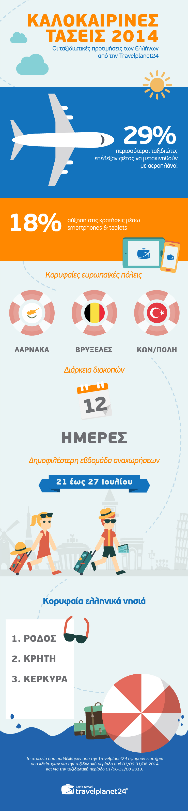 Το καλοκαίρι έφτασε επίσημα στη λήξη του, και η Travelplanet24 παρουσιάζει μέσα από τα δεδομένα της, την ταξιδιωτική τάση των Ελλήνων για την καλοκαιρινή περίοδο του 2014.