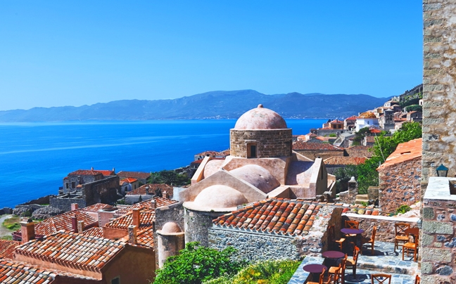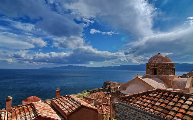 Η βυζαντινή καστροπολιτεία της Μονεμβασιάς στέκει καρτερικά στο νοτιοανατολικό άκρο της Λακωνικής γης, υποδέχοντας τους επισκέπτες της σε μια πόλη, που μοιάζει να μην την άγγιξε το πέρασμα του χρόνου.
