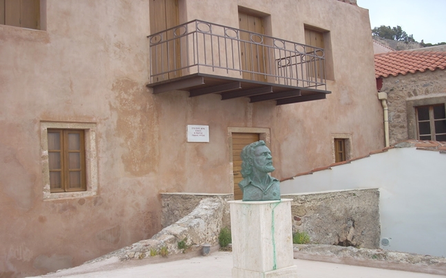 Μπαίνοντας στο κάστρο, ένα μικρό δρομάκι στα αριστερά σας θα σας οδηγήσει στο σπίτι του ποιητή Γιάννη Ρίτσου, έξω από το οποίο υπάρχει και η προτομή του. Είναι ένα από τα πιο ήρεμα και όμορφα σημεία της Μονεμβασιάς, που δίνει στον επισκέπτη μια πρώτη εντύπωση για το τι τον περιμένει.