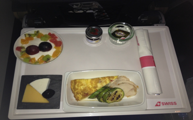 Κατά τη διάρκεια των πτήσεων προσφέρονται, ανάλογα με την διάρκεια, ζεστές πίτες (Κις Λορέν), φρέσκα αρτοσκευάσματα, φρέσκες σαλάτες και δελεαστικά γλυκά. Έτσι όλοι έχουν τη δυνατότητα να γευτούν ποιοτικά Ελβετικά προϊόντα.