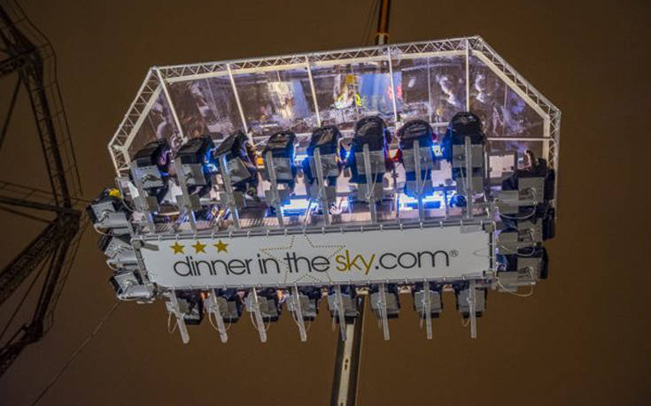 Με θέα που κόβει την ανάσα, το Dinner in the Sky λειτουργεί από το 2006 στο Βέλγιο, έχει ταξιδέψει σε περίπου 60 χώρες και σερβίρει τα πιάτα του σε ύψος 40 μέτρων. Διαθέτει ένα τραπέζι 20 ατόμων, το οποίο παίρνει ύψος με τη βοήθεια ενός γερανού, όπου ο επισκέπτης εκτός από την πανοραμική θέα απολαμβάνει ένα υπέροχο μενού έξι πιάτων.