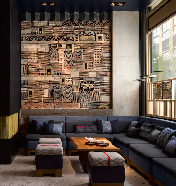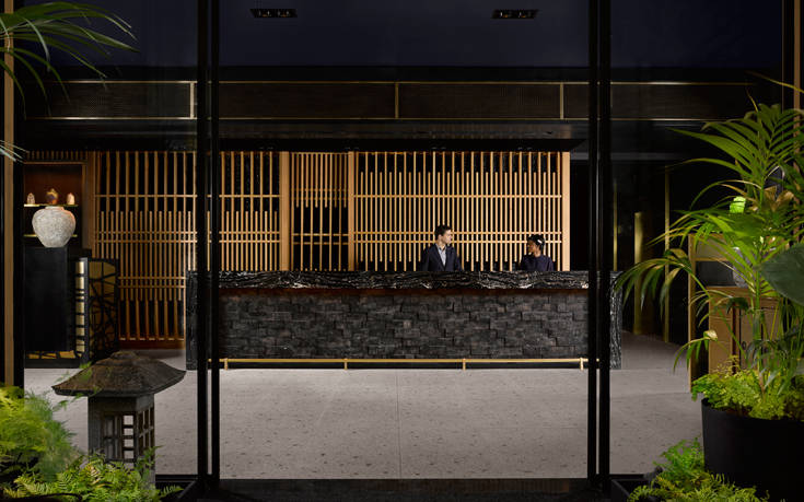 Οι πανύψηλες πόρτες της εισόδου δημιουργούν μια αίσθηση μεγαλοπρέπειας στον επισκέπτη, την ώρα που τα παράθυρα της πρόσοψης επιβεβαιώνουν και τις ιαπωνικές «ρίζες» του ξενοδοχείου. Η διακόσμηση των εσωτερικών του χώρων ξεχωρίζουν για το απροσδόκητο γεωμετρικό μοτίβο τους, βασισμένο στην ζωγραφική τεχνική sumi-e της Ανατολικής Ασίας.