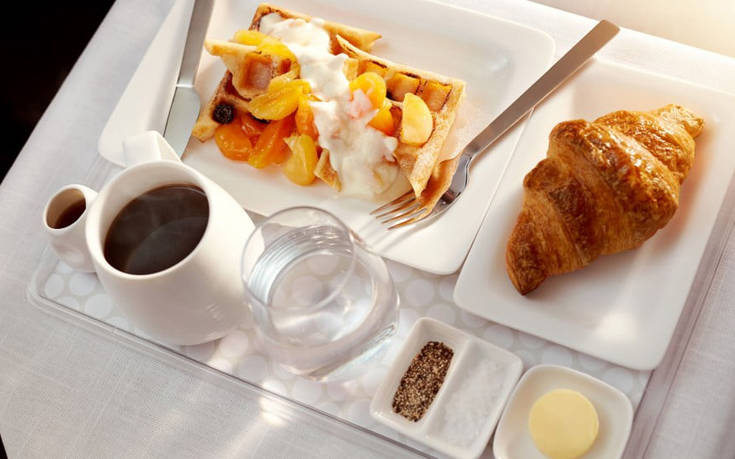 Εξίσου πλουσιοπάροχο είναι και το πρωινό, στο οποίο μεταξύ άλλων σερβίρονται φρέσκια φρουτοσαλάτα, ελληνικό γιαούρτι, κρουασάν βουτύρου, scrambled eggs, μπέιγκελ παρμεζάνας με μπείκον και καραμελωμένα κρεμμύδια κ.α.