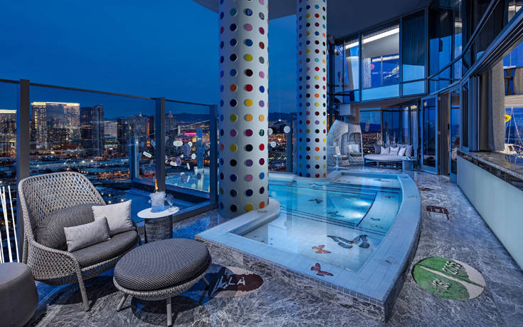 Η ανασχεδιασμένη από τον φοβερό και τρομερό Damien Hirst σουίτα του ξενοδοχείου, το οπτικό ποίημα που είπαν «Empathy Suite», κοστίζει πια 100.000 δολάρια τη βραδιά, 91.000 ευρώ δηλαδή.