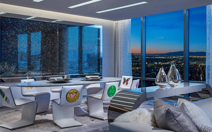 Εδώ μιλάμε για μια διώροφη υπερπολυτελή κατασκευή στην κορυφή του ξενοδοχείου 836 τετραγωνικών μέτρων, που επιβλέπει το Λας Βέγκας και έχει 24ωρο προσωπικό σέρβις για τους ενοίκους.