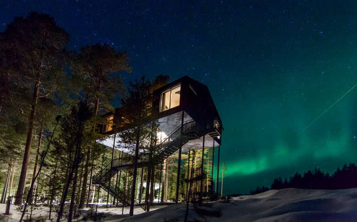 Στον Αρκτικό Κύκλο όλα αυτά, εκεί που λειτουργεί το Tree Hotel, φέρνοντας κοντά φύση και πολυτέλεια.
