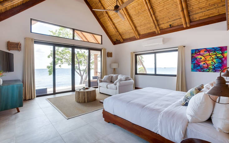 Το εξωτικό νησί των 2,5 στρεμμάτων έχει πέντε βίλες 92 τετραγωνικών μέτρων, ώστε να μπορεί να φιλοξενήσει 14 ενήλικες και 6 παιδιά, κάτι που το κάνει ιδανικό για παρέες κροίσων με οικογένεια.