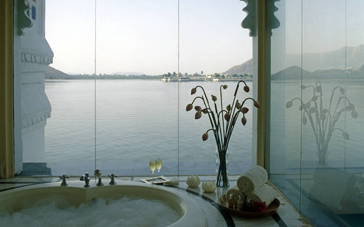 Ο λόγος για το Taj Lake Palace στην πόλη Ουνταϊπούρ της πολιτείας Ρατζαστάν, εκεί όπου μια σειρά από τεχνητές λίμνες μετατράπηκαν σε ιδανικό σκηνικό για παλάτια και μέγαρα.