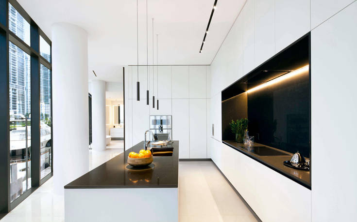Εγκατεστημένο σε τρεις ορόφους (63-65), το διαμέρισμα των 1.850 τετραγωνικών μέτρων είναι η επιτομή του luxury μινιμαλισμού, ένα κομψότατο δείγμα αισθητικής και λειτουργικότητας με έμφαση στη θέα.