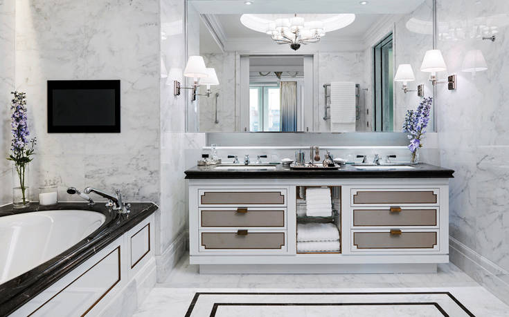 Μιλάμε για μια προεδρική σουίτα 450 τ.μ., τη μεγαλύτερη που έχει να επιδείξει το Λονδίνο, ένας τεράστιος χώρος που επιδεικνύει λάμψη και κομψότητα σε κάθε του σπιθαμή.