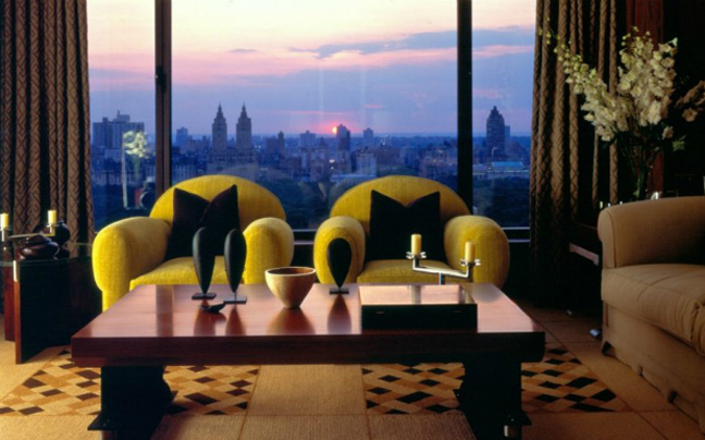 Μια διώροφη σουίτα με υπέροχη σκάλα, τοίχους καλλυμμένους με κασμίρ και μοναδική θέα στο Central Park. Με το γύρισμα του κλειδιού στην πόρτα μπαίνετε αυτόματα στη υψηλή κοινωνία της Νέας Υόρκης. Η σουίτα έχει σχεδιαστεί από τον Thierry Despont, ο οποίος είναι σήμερα υπεύθυνος για την ανακαίνιση του Ritz στο Παρίσι.