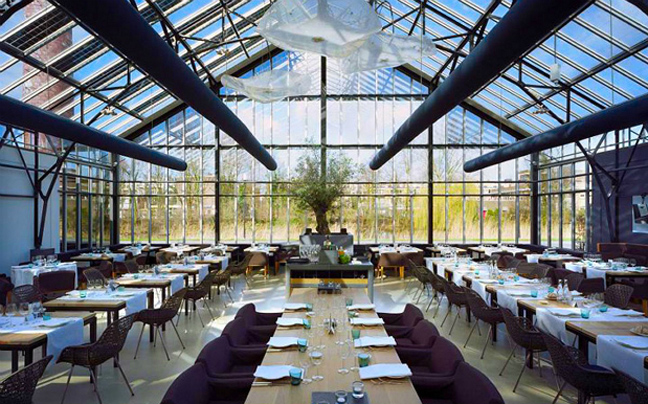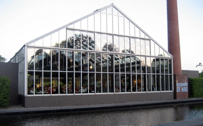 Εντυπωσιακό και άκρως πρωτότυπο το design του εστιατορίου De Kas στο Άμστερνταμ. Οι πελάτες του απολαμβάνουν το γεύμα τους μέσα στον ειδικά διαμορφωμένο χώρο ενός θερμοκηπίου λαχανικών.