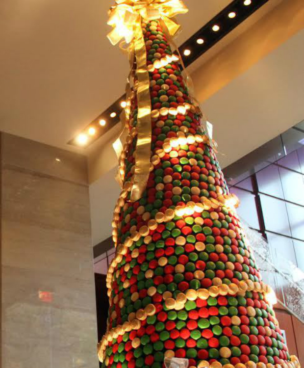 Μέσα σε 58 ώρες οι σεφ «έστησαν» αυτό το πρωτότυπο βρώσιμο δέντρο, το «Macaron Holiday Tree», που θα κοσμεί το λόμπι του ξενοδοχείου έως τις 29 Δεκεμβρίου.