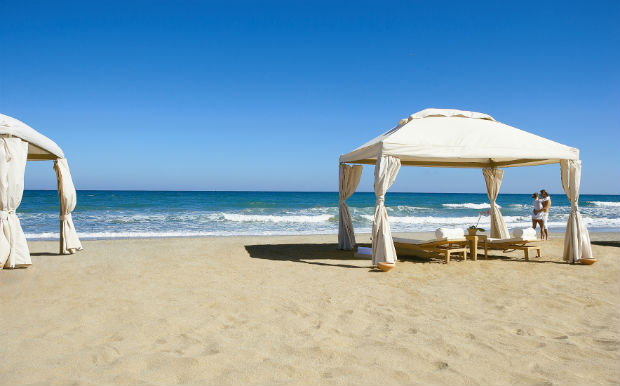 Ίδιο σκηνικό και στην υπέροχη παραλία που απλώνεται μπροστά από το resort με τα μεγάλα gazebos να εξυπηρετούν με ιδιωτικότητα τους ενοίκους των βιλών. Εδώ ομπρέλες και μεγάλες αναπαυτικές ξαπλώστρες υπάρχουν σε όλο το μήκος της παραλίας.