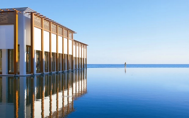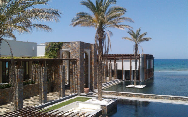 Μια σειρά από κτήρια, σχεδιασμένα από απόλυτες γραμμές, φιλοξενούν τα δωμάτια και τα εστιατόρια, ενώ στην μια άκρη του έχει δημιουργηθεί το συγκρότημα με τις βίλες με τις ιδιωτικές πισίνες και στην άλλη βρίσκεται η πισίνα ολυμπιακών διαστάσεων, που ουσιαστικά δεν είναι ορατή από τα κεντρικά σημεία θέας, αφήνοντας αναλλοίωτο το φυσικό στοιχείο της θάλασσας να κυριαρχεί.