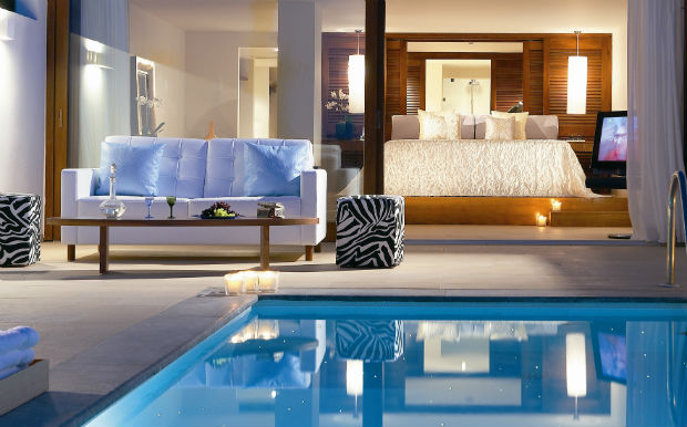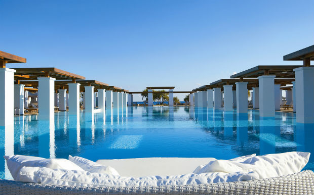 Στην πισίνα αν και ολυμπιακών διαστάσεων, νιώθεις ότι είσαι ο μοναδικός επίτιμος καλεσμένος. Το έντονο τυρκουάζ της θα σας τραβήξει σα μαγνήτης για βουτιές και άθληση, όπως το τροπικό σκηνικό γύρω της και το άψογο σέρβις θα σας κάνει να μην θέλετε να σηκωθείτε από την ξαπλώστρα σας. Βυθιζόμενες κολώνες στηρίζουν τις ξύλινες πέργκολες που χαρίζουν βαθύ ίσκιο.