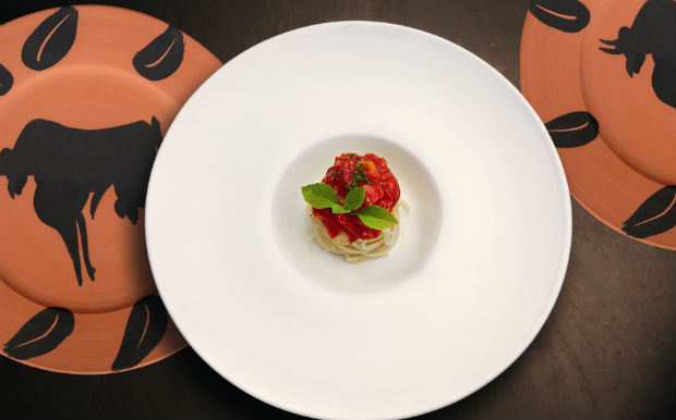 H εμπειρία στο νέο gourmet εστιατόριο “Minotaur” δεν έχει σχέση μόνο με τη γεύση. Είναι ένας χώρος τέχνης, ιστορίας, έμπνευσης. Η σύνδεση του με το Παλάτι του Μίνωα στην Κνωσό, που απέχει μόλις λίγα χιλιόμετρα από το ξενοδοχείο, αποτέλεσε το έναυσμα για να αγοραστούν πρόσφατα από διεθνή δημοπρασία, τα έργα κεραμικής του Pablo Picasso, τα οποία δημιουργούσε επί 25 χρόνια. Ο Picasso ζωγράφιζε τον εαυτό του ως Μινώταυρο, το μυθικό τέρας με όψη μισού ανθρώπου, μισού ταύρου, δημιουργώντας μια εκπληκτική συλλογή από αυθεντικά κεραμικά