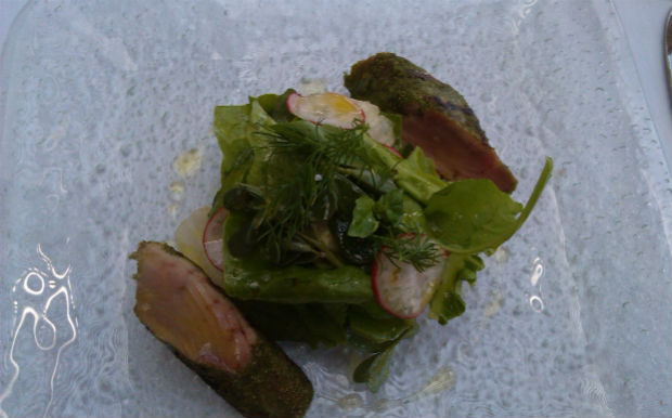 Το χταποδάκι με κρίταμα τουρσί, τον φρέσκο τόνο με κρούστα μυρωδικών, τοματίνια, γλυστρίδα και μάραθο, το μαριναρισμένο γαύρο με θυμάρι.