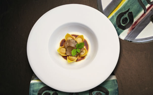 Η σπάνια αυτή συλλογή, σήμερα κοσμεί το εστιατόριο, με τα κεραμικά να έχουν τοποθετηθεί σε όμορφες προθήκες, ενώ το μενού δημιουργήθηκε για να τιμήσει αυτή την αρχαία κεραμική τέχνη. Στον μοναδικό αυτό χώρο θα γευτείτε δροσερό καρπάτσιο από βοδινό angus με κρητική γραβιέρα, μουσελίν σελινόριζας και γλυκόξινη μελιτζάνα, τρομερό “tortelli” γεμιστό με μοσχαράκι και μυζήθρα Ρεθύμνου, κρέμα παρμεζάνας και καλοκαιρινή τρούφα από τον Όλυμπο.