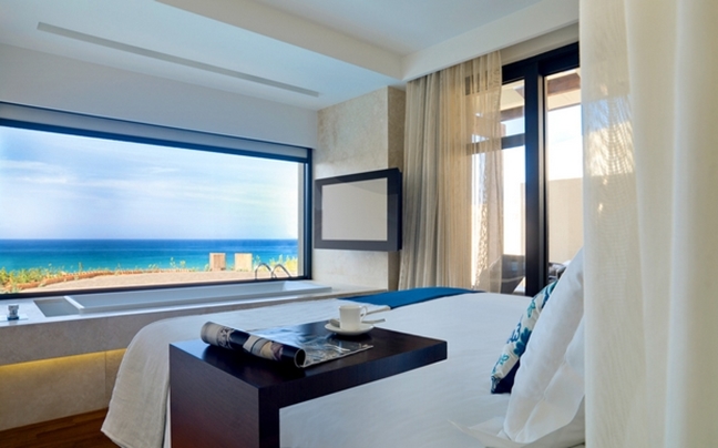 Μια αύρα πολυτέλειας θα σας πλημμυρίσει σε όλα του τα δωμάτια και τις πολυτελείς σουίτες. Τα χρώματα της άμμου κυριαρχούν σε όλα τα σημεία, ενώ το μεγάλο μαρμάρινο μπάνιο, με τις ξεχωριστές καμπίνες του ντους και της τουαλέτας, κλείνει μέσα του μια απολαυστική μπανιέρα με… παράθυρο στο όνειρο!