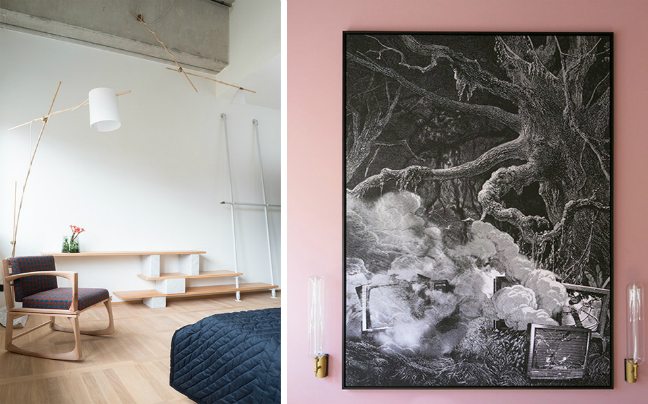 Ουδέτερες αποχρώσεις του ξύλου, τοίχοι καλυμμένοι με γκρι καμβά και λεπτομέρειες χαλκού δημιουργούν μια χαλαρωτική ατμόσφαιρα, ενώ τα έργα τέχνης του Βερολινέζου Maximan Rodel δίνουν μια ακόμα design αισθητική.