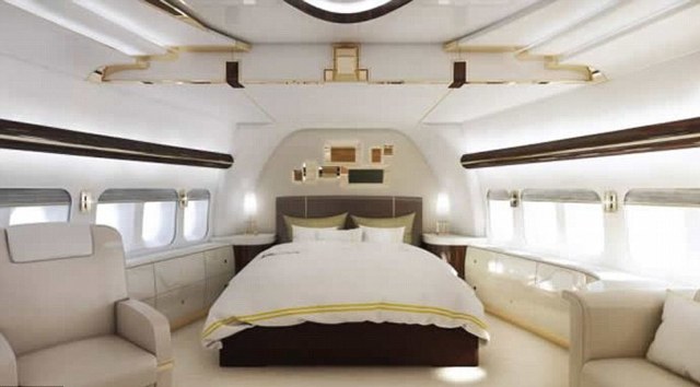 Ένα τέτοιο αεροσκάφος, που μπορεί να μεταφέρει μέχρι και 450 επιβάτες, μεταμορφώθηκε σε ένα ιδιωτικό τζετ (ο ιδιοκτήτης του είναι άγνωστος, σύμφωνα με τη MailOnline) και θυμίζει περισσότερο ένα υπερπολυτελέστατο mega yacht.